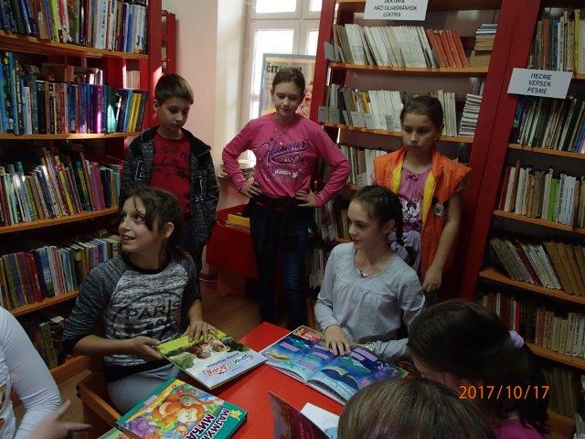 Október 17 –én a hajdujárási 5. Osztály a palicsi Könyvtárba látogatott. A könytáros néni minden kérdésünkre válaszolt és elmondta a legfontosabb tudnivalókat. Sok érdekes könyvre bukkantunk, amiért majd megéri betagosodni . Sokan először jártak itt a könyvtárban , de mindannyian szép élménnyel távoztunk. Mivel az idő csodaszép volt , egy kis fagyi és játék is belefért a tó parton .