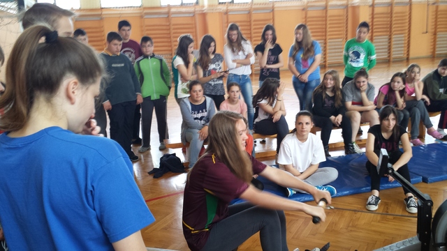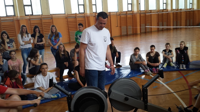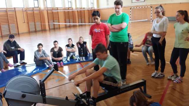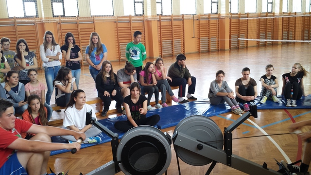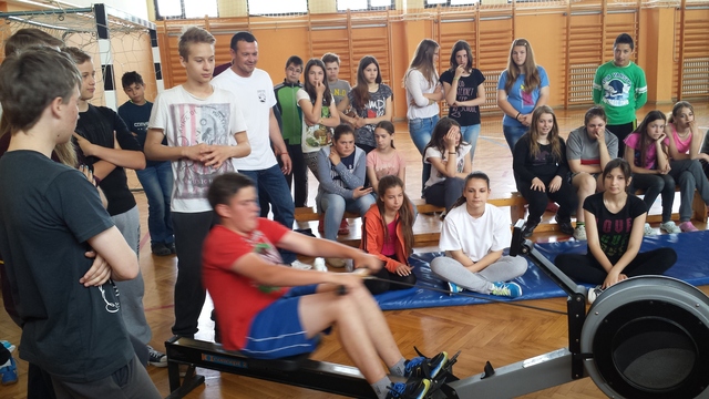 A Palicsi Evező Klub bemutató toborzást tartott iskolánkban. A tanulók kipróbálhatták a száraz evezős edzést.