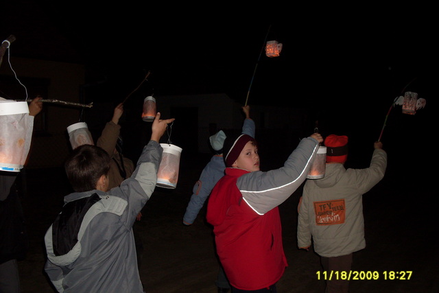 A királyhalmi 2. osztály is készített lámpást, amit ki is próbáltak. Gyerekek és szüleik sétát tettek a faluban. Kedvcsinálónak az éneklés sem maradhatott el.