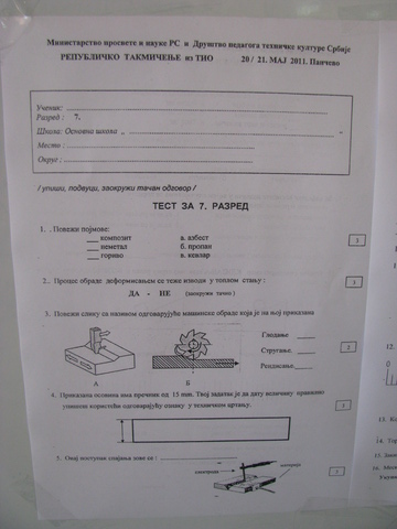 Május 20 és 21-kén megrendezésre került az 52. országos műszaki verseny Pancsován. Iskolánkat Nagy György Anikó képviselte igen eredményesen. A versenyen 760 tanuló vett részt, 320 tanár kiséretében. Első nap a tanulók tesztet írtak, amin Anikó 42 pontot ért el, a maximális 50-ből. Majd másnap mindenki a saját kategóriájában versenyzett, Anikó hajómodelezésben, amiben a negyedik helyezést érte el. Az összesítésben 6. lett ami igazén szép eredmény egy ilyen rangos versenyen. Gratulálunk, és további sikeres tanulást és versenyzést kívánunk.