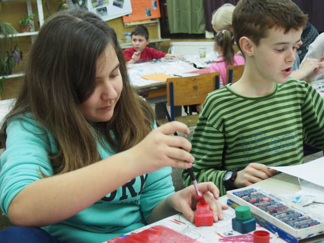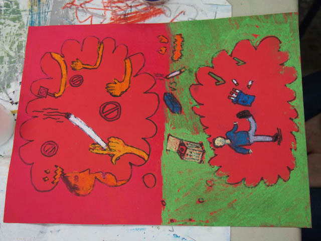 Iskolánk tehetséges kis művészei a dohánymentes nap pályázatra készülnek.