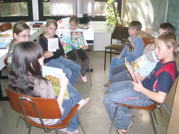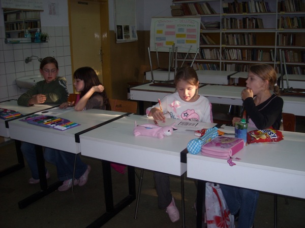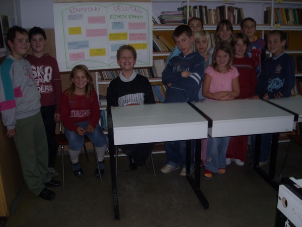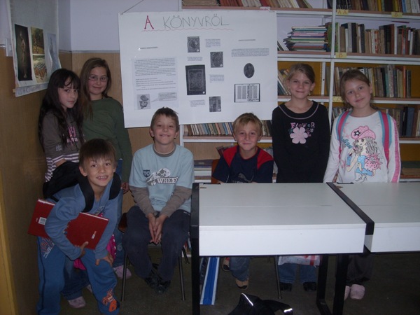 Könyvtári délutánt tartottunk a hajdújárási 3. és 4. osztállyal. A tanulók elhozták a kedvenc könyvüket, amit bemutattak egymásnak (mi a címe, kitől kapta, miért szereti). Különböző feladatokat oldottunk meg, a könyv történetével és nyomtatásával kapcsolatban. Könyvjelzőt is készítettünk, amit a könyvtárból kölcsönzött könyvek jelölésére használnak majd. Készítettünk egy faliújságot is. A foglalkozás végén minden tanuló választott magának olvasnivalót az új könyvek közül.