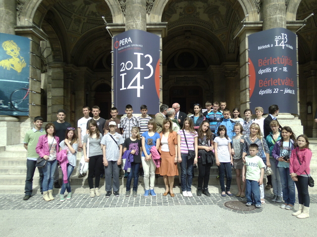 Az Operaházban megnéztünk egy előadást („Pomádé király új ruhája”). Továbbá az Országház kupolatermében megtekintettük a Szent Koronát ,koronázási ereklyéket, a korona védőket és az üléstermet.Rengeteg arany építőelem ékesíti a Magyar Országházat, ami nagy hatással volt ránk. Sokat megtudtunk Petőfi életéről,műveiről az Irodalmi Múzeum segitségével. Finom vacsorával zárult a látogatás és lassan indultunk haza. Az út zavartalan volt, de a határon sok busz állt előttünk ezért a röszkei határról átirányultunk a tompai határátkelőhöz, ahol szerencsére nem volt csak egy busz előttünk , de így is éjfélkor értünk haza.